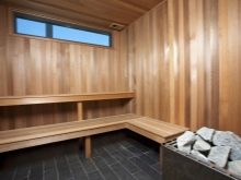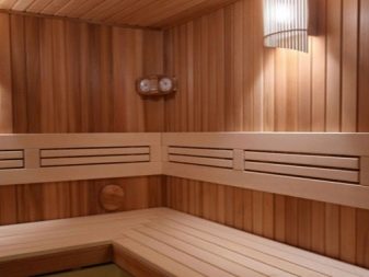 Cedar lining is considered to be the ideal option for covering the bath space. Products are quite expensive, so they are rarely used for bath trim. Cedar wood is durable, resistant to moisture. Another positive quality is the respectability of its appearance.