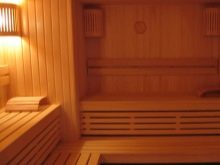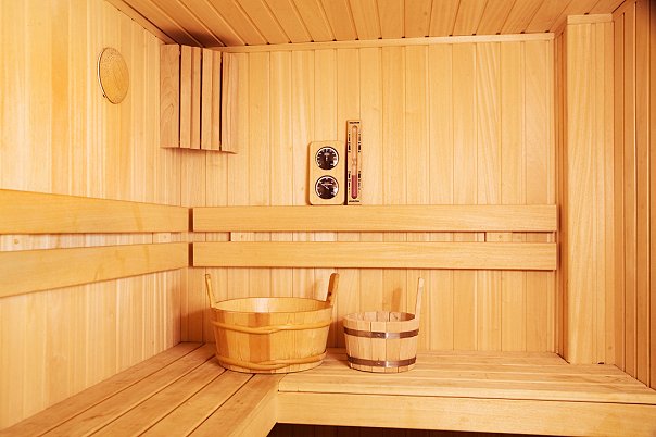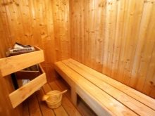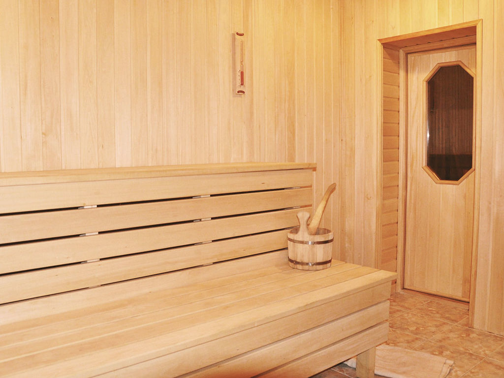 This photo shows the interior of the bath in a rustic style.