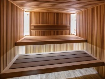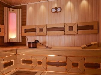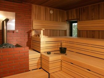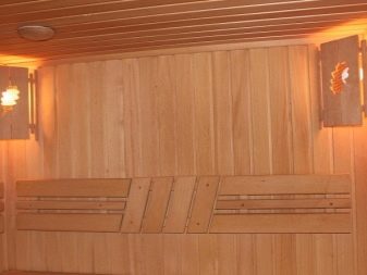 For covering the bath inside, you can use a panel of various types of wood.Uniform conditions for the material - it must be resistant to moisture, frequent and sudden temperature changes. When choosing a material, it is necessary to rely on the main criteria of the tree species.