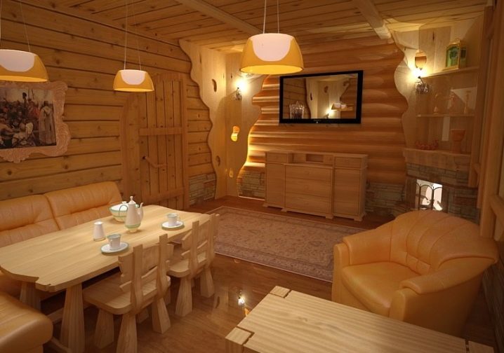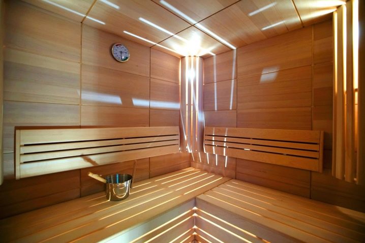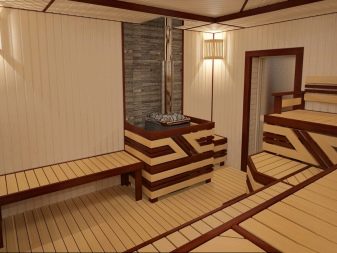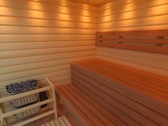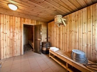 Features of the interior of the bath inside using clapboard