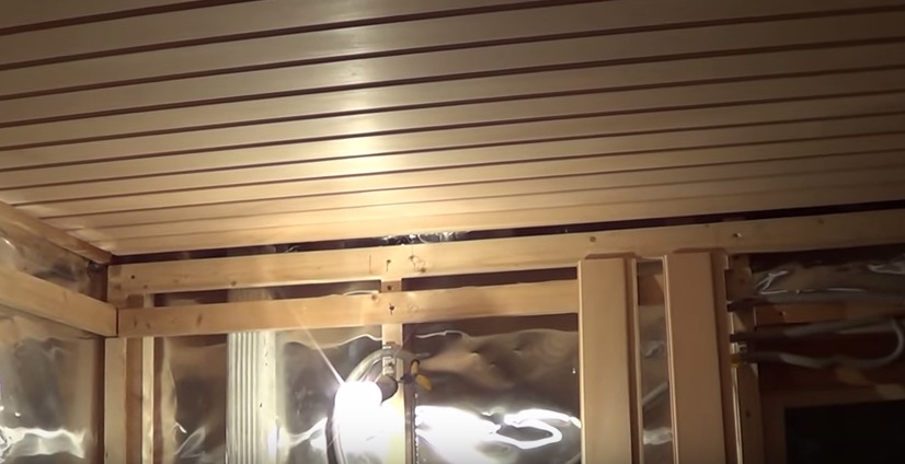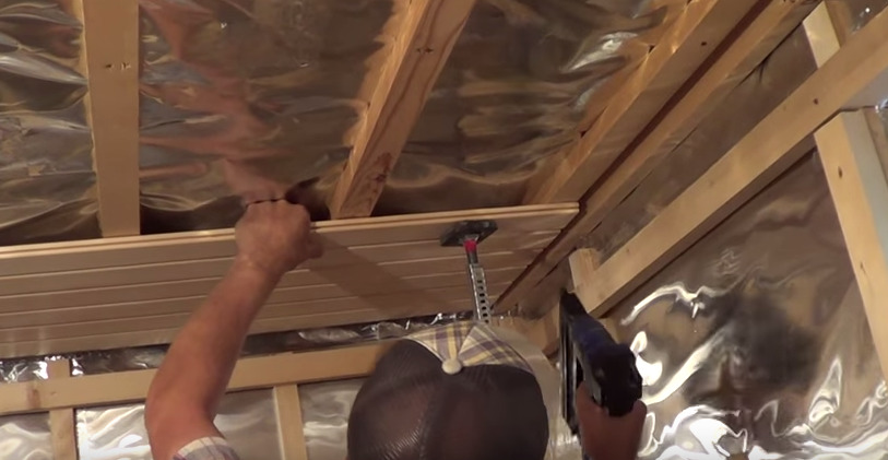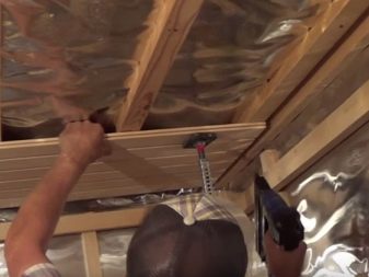 The headliner of the bath starts from the entrance to the room. Experts recommend using small nails and clamps to fix the panels. The method with cleats is preferable, and this limitation is connected with a sufficiently serious load of the material mass. Fastening the last board is carried out with nails without a cap, which are hammered with a special tool (doboynik).