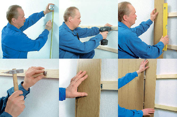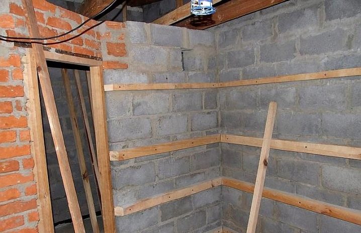 If irregularities occur during the installation of the batten, it is necessary to put linings under the bars. These parts are made of the same wood as the batten itself. Screws, plastic dowels or galvanized screws are used to fasten the bars to the wall.