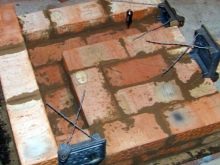 - The first row is laid out from the corners on the perimeter. First, the solution is applied, then a series of pre-selected bricks are laid. Before laying each brick is dipped into the water for 20 seconds. The thickness of the seam should be no more than 5 mm.
