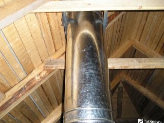 Collect the chimney from several parts, any higher part is worn on the bottom, and then well fastened clamps. Before fixing the elements of the joints are lubricated with heat-resistant sealant. Then the pipe is led through the ceiling and the roof.
