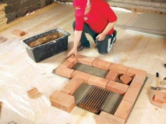 - before starting work, the foundation for the stove is settled. To do this, pulled out the pit. Its bottom is covered with rubble, then sand and covered with waterproofing material. The foundation is strengthened with pieces of reinforcement and poured with concrete;