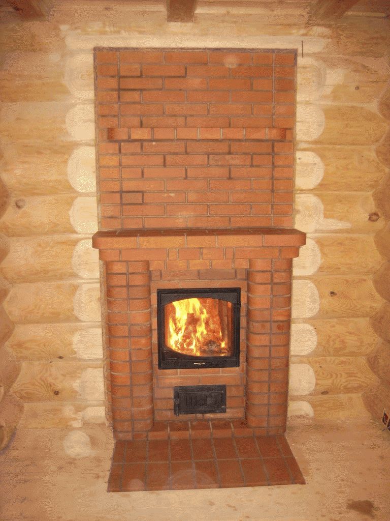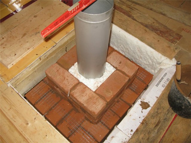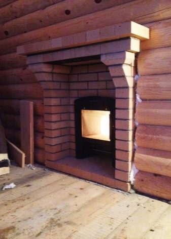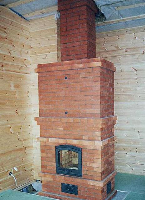 - the construction of the furnace, passing through the opening in the wooden wall, is lined with brick masonry;