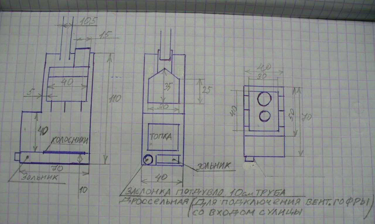 The design of a furnace with a firebox in the dressing room is more complicated than the design of a conventional furnace. The firebox is removable or part of the whole structure.