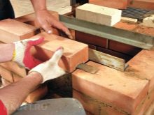 In the process, the selected bricks are numbered, made notches, prepare pieces of the desired shape and size. Only then can you begin work using the solution.