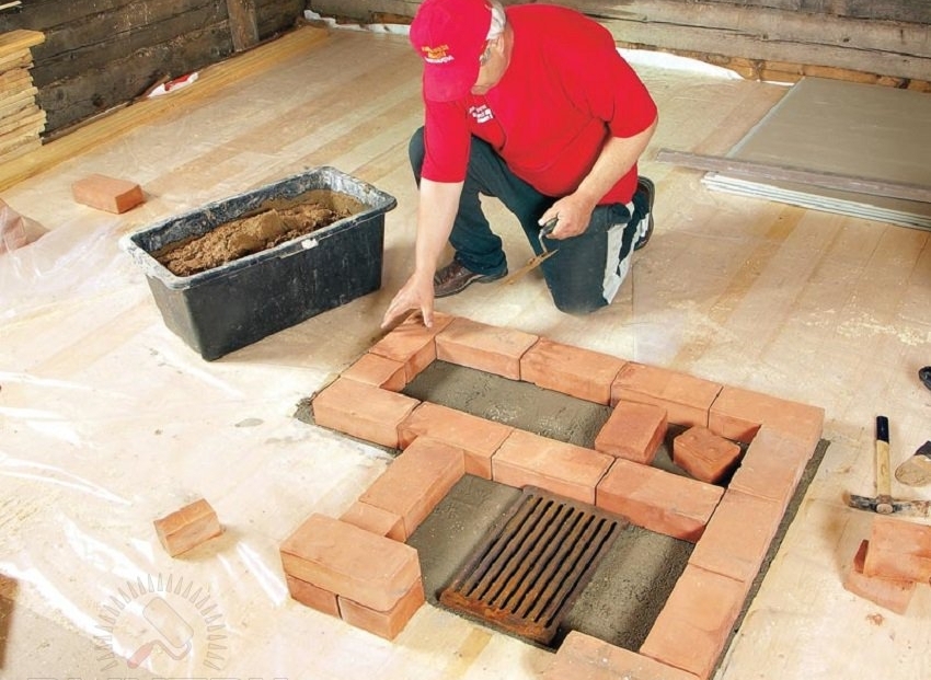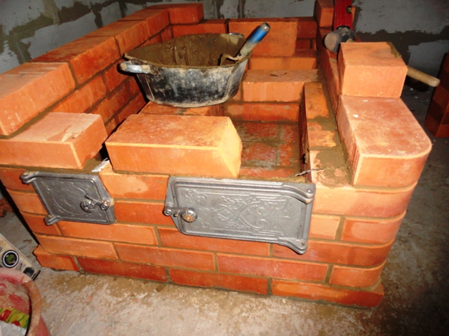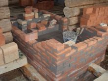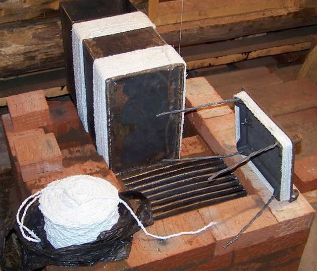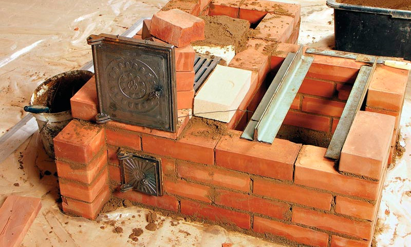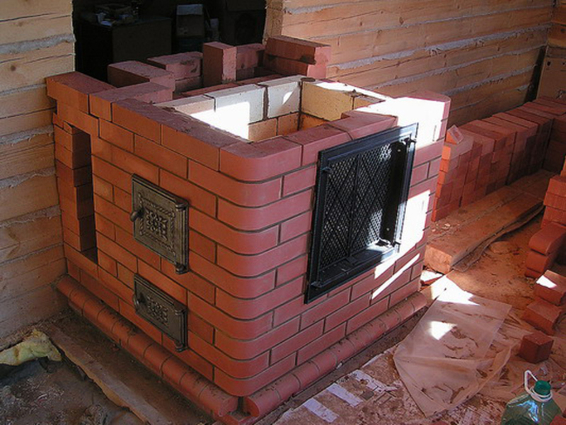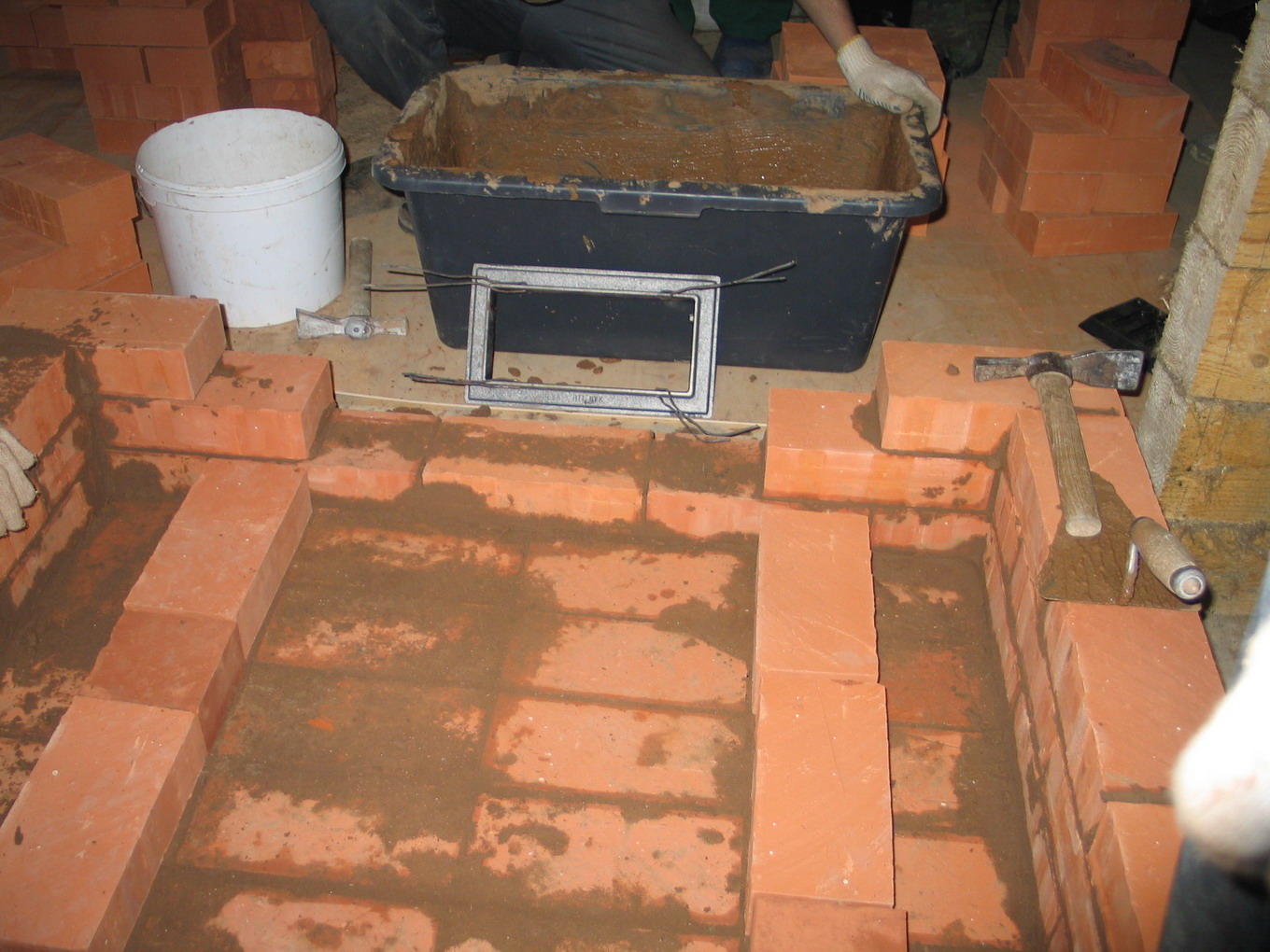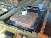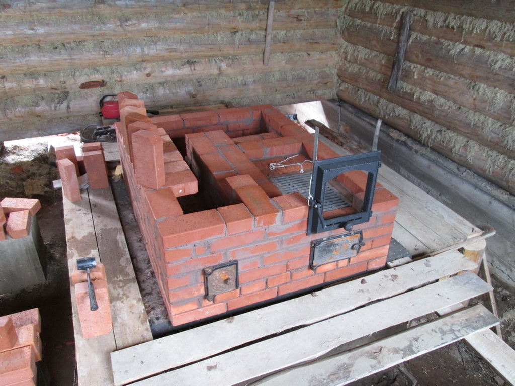 For the formation of the combustion chamber using fireclay bricks. After the firebox, a cast-iron plate is mounted on which stones for a bath will later be laid out.