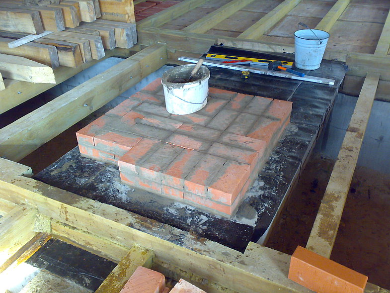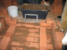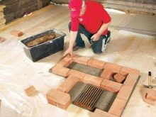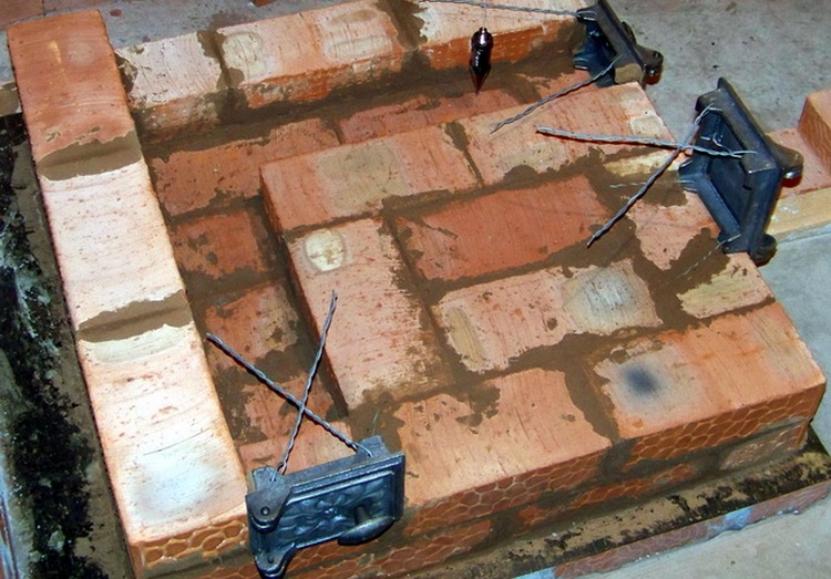 Laying pattern should start from the zero row. This is done in order to bring the foundation on one level with the floor. The first row spread with great care. Using a plumb line, the vertical of the furnace walls will be checked further along the bricks of the first row.