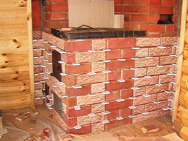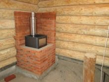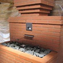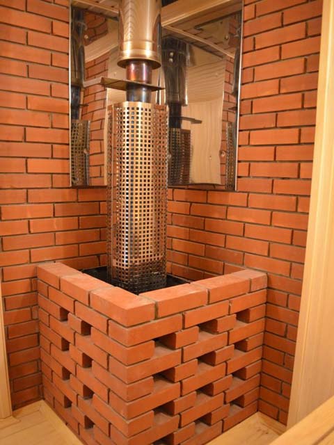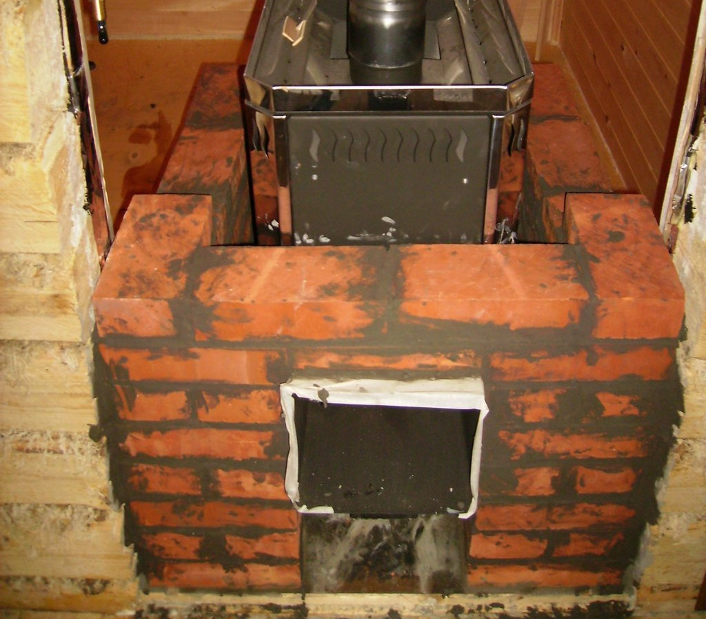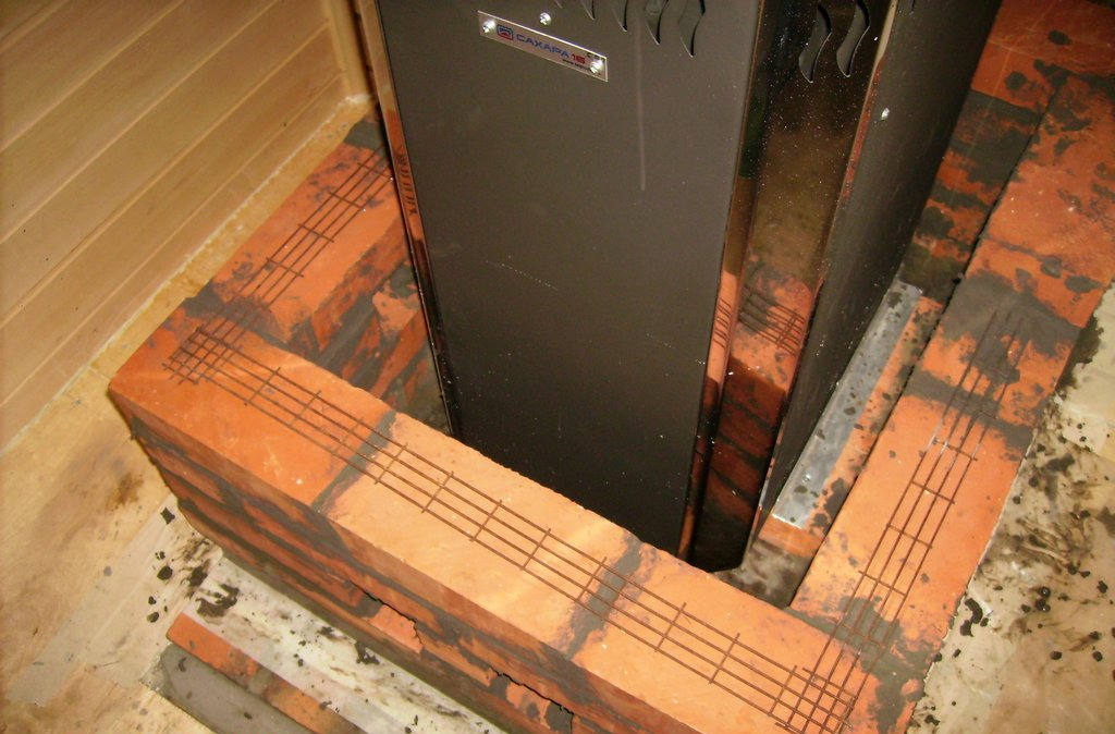 A brick product should be erected near the wall opposite to the shelves in the steam roome. When creating a project you need to consider that the distance between the heating part of the unit and the place supporting combustion should be at least 40 cm. When choosing a special protection, for example, from asbestos cardboard, the distance can be reduced to 20 cm.