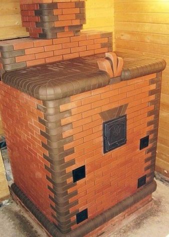It is possible to finish the stove for a bath with a decorative brick or stone. To do this, use porcelain, marble, granite, serpentine.