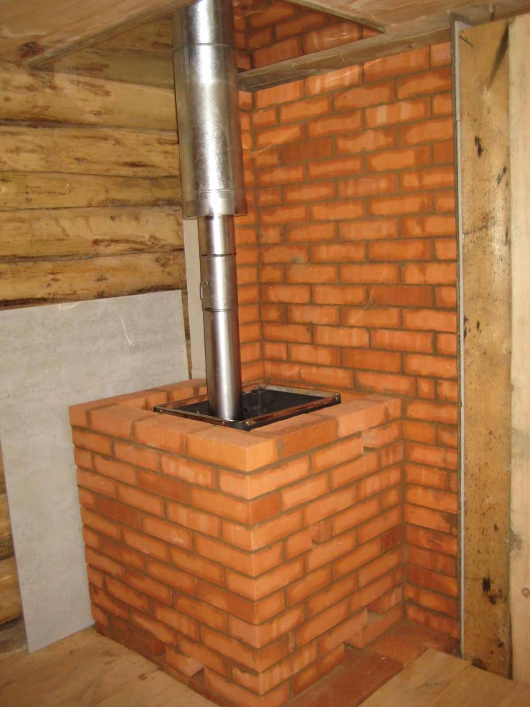 When building a chimney, it is taken into account that a pipe made of iron will cause condensate when temperature drops, which will lead to accumulation of soot in the pipe, so you should choose a brick for the chimney.