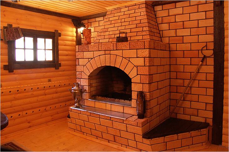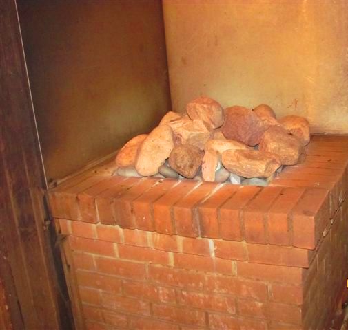 Due to the thickness of the bricks and massive stones, the room will keep warm for a long time. After the procedure, the room is ventilated, water is poured onto the stones to remove the soot. After cleaning the room is ready for new procedures.