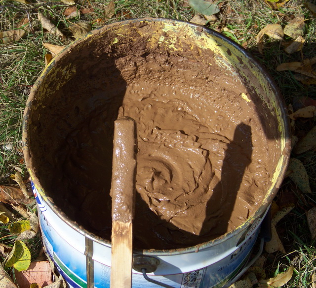 Clay for the preparation of the solution must be kept for several days in water so that it is soaked. Before working, the clay is diluted with water, sand is added and the solution is made to a thick cream.