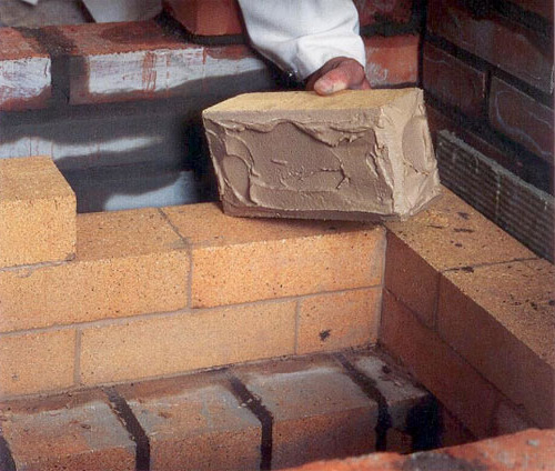 Before starting work, the bricks are soaked in water until bubbles appear, this will improve adhesion and prevent the solution from dehydrating. Using chamotte brick, it is immersed in water to remove dust.