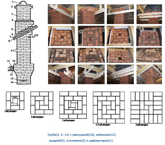 Only whole bricks should be placed in the chimney so that halves or cracked elements cannot fall out. The chimney should be laid out very carefully, the surface should be absolutely flat, otherwise dust and soot will accumulate in the gaps, which will lead to a rapid clogging of the mine.