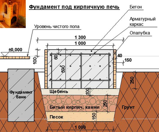 The design must be durable and reliable, therefore, without building a solid, reliable foundation is indispensable. In principle, the basis for a bath stove is very similar to the arrangement of strip foundations.