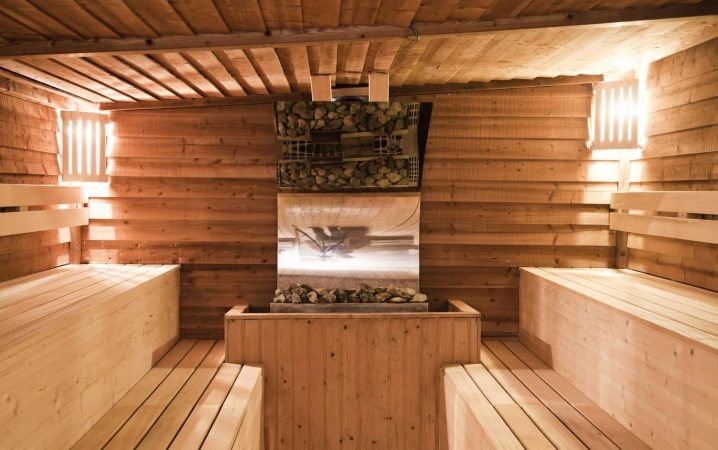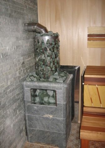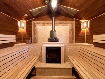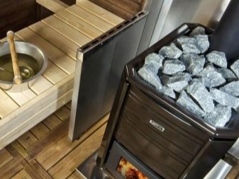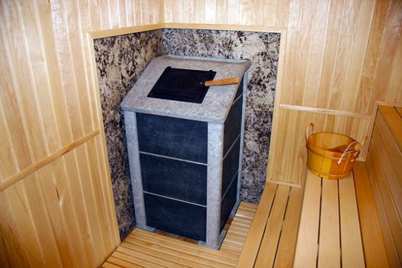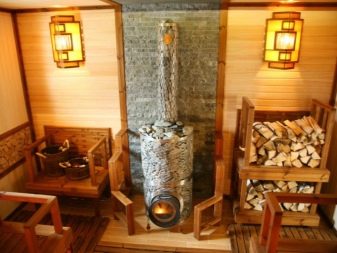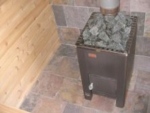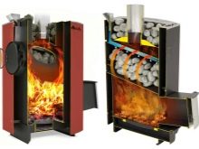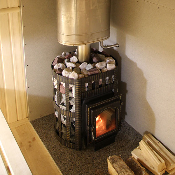 Classic wood stoves are considered in which stones are stacked on top of the structure. They need to splash water or an aromatic liquid, which at the same time will fizz and evaporate. Thus, a special relaxing atmosphere is created in the steam room, in which it is very comfortable and cozy.