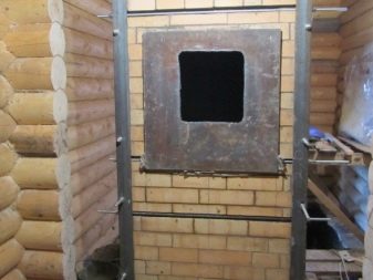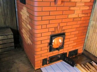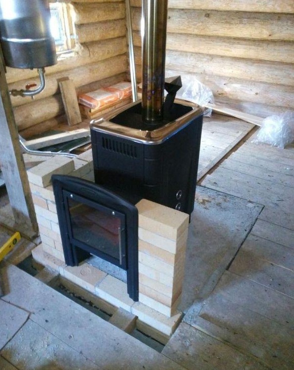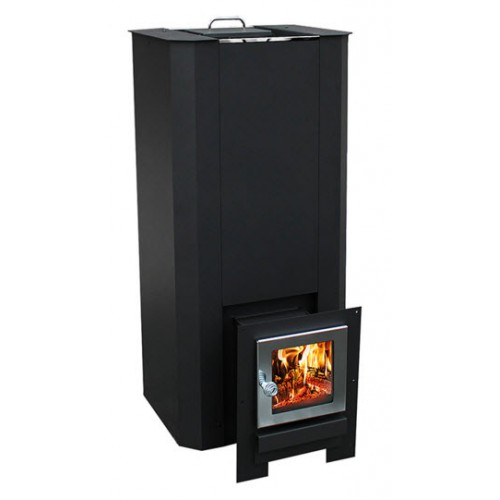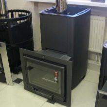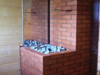 A stove with such a design makes it possible to open access for throwing firewood in the conditions of a waiting room, and to place heated stones in the steam room.