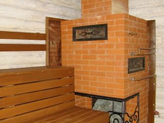 Fans of non-standard solutions should pay attention to the beautiful stoves, fireplaces.These combined models are considered practical, economical and functional. These units are installed in such a way that the stove is located in the steam room, and the fireplace is in the waiting room.