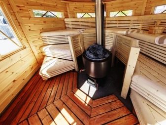 Today, manufacturers offer us not only standard wood stoves of a square or rectangular shape, but also more original figured and cylindrical specimens. However, before buying such models, you must make sure that they fit into the layout of your steam room, as well as fit it in size.