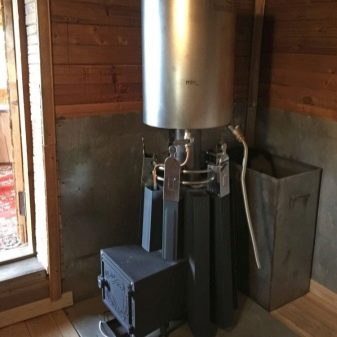 Wood stoves can have different types of water tanks. So, models with portable tanks are considered the most convenient to use. Often the tank is installed in the shower corner of the bath. In addition, these units can have a variety of dimensions.