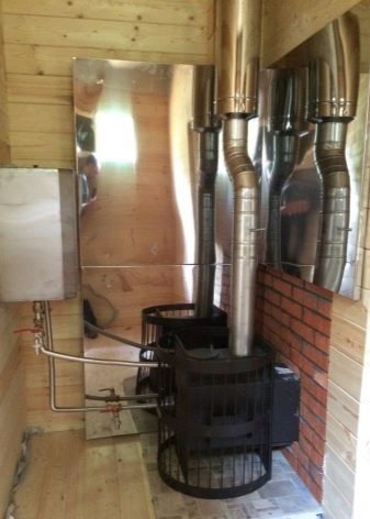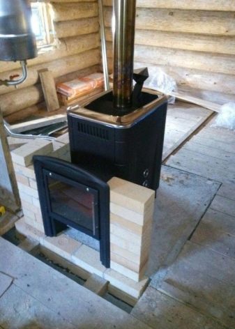 It is recommended to protect the iron stove from the steam room with a decorative fence, or you can finish the unit with bricks or stones. This way you will save yourself from burns.