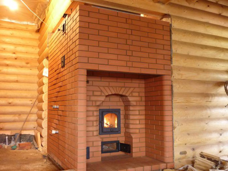A long fire chamber in such a furnace overcomes the partition between rooms. As a rule, the wall section in contact with the stove is made of stones or special fire-resistant bricks.