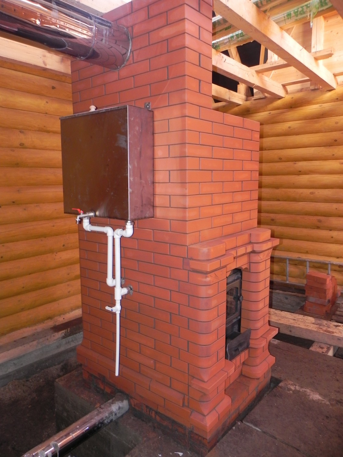 The built-in water tanks are located in the inner part of the furnace itself. Such instances are in considerable demand, as in such units the chimney can warm up to 500 degrees, and the pipe passes inside the oven (water is poured into the tank from above). The main disadvantage of these devices is that the water in them very often and quickly begins to boil., because of which there is a lot of steam. In such cases it is necessary to add additional water.