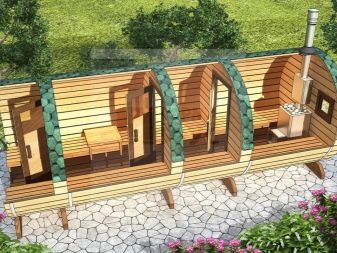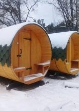 Beautiful baths, made in the form of barrels, today are very popular. If earlier only traditional square or rectangular buildings were found on the plots, then nowadays unusual buildings with rounded shapes are more often seen.