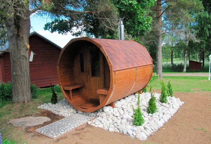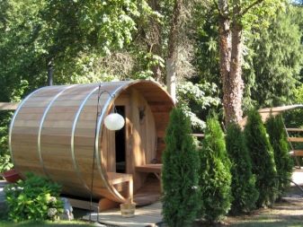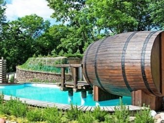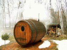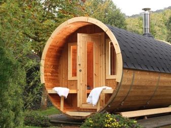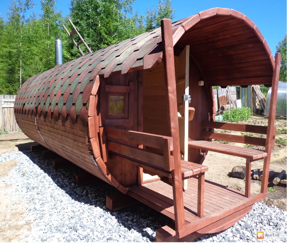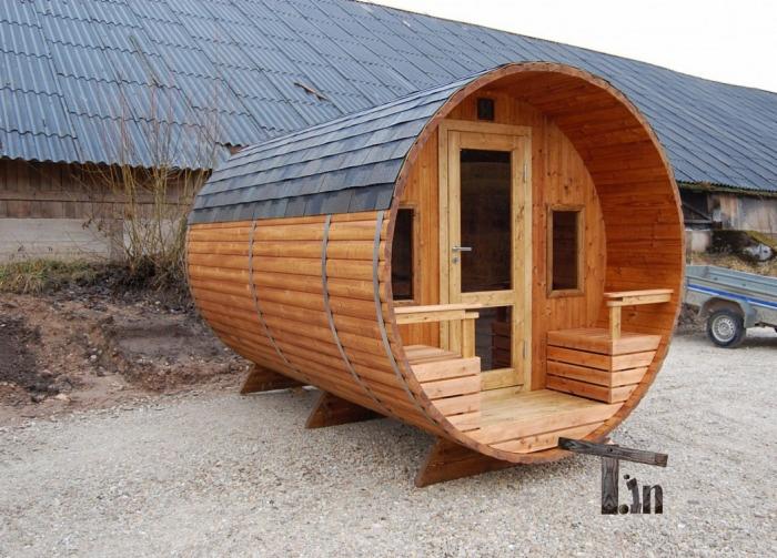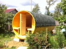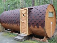 If you are tired of standard and trivial outbuildings, then an interesting sauna in the form of a barrel will definitely be to your taste. Such an erection looks very original, therefore owners of country and suburban plots, who want to transform their dwelling, are increasingly turning to it.