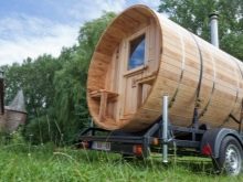 Modern consumers have the opportunity to purchase a complete set for assembling a bath-barrel. Elements of this design may have different dimensions, so you can choose the best option for areas of any area. As well as various companies offer consumers not only full-fledged mobile baths in the form of a barrel, but also provide a service for their delivery.