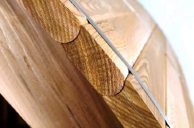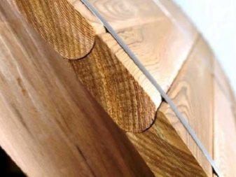 - For the connection, you need to cut the grooves in the upper ends of the boards. It is worth making grooves such that they repeat the circumference of the barrel;