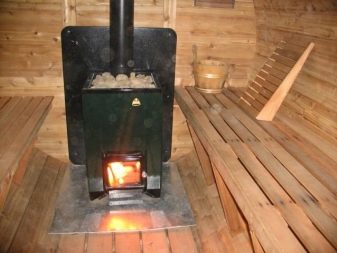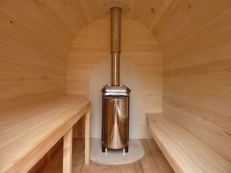 Experts advise to protect the washing structure from the oven, so as not to accidentally burn yourself. The stove in the Russian bath should not be too big, as in the buildings in the form of a barrel there is not too much free space.On all sides, the unit should be sheathed with durable and heat-resistant material.