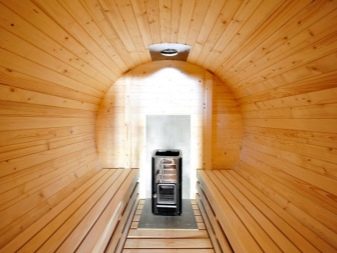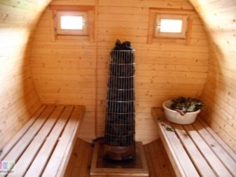 Inside such a rounded bath you need to equip shelves along the walls. And it is also important to place a stove-heater in a similar structure, since this part must be located at the end opposite the entrance.