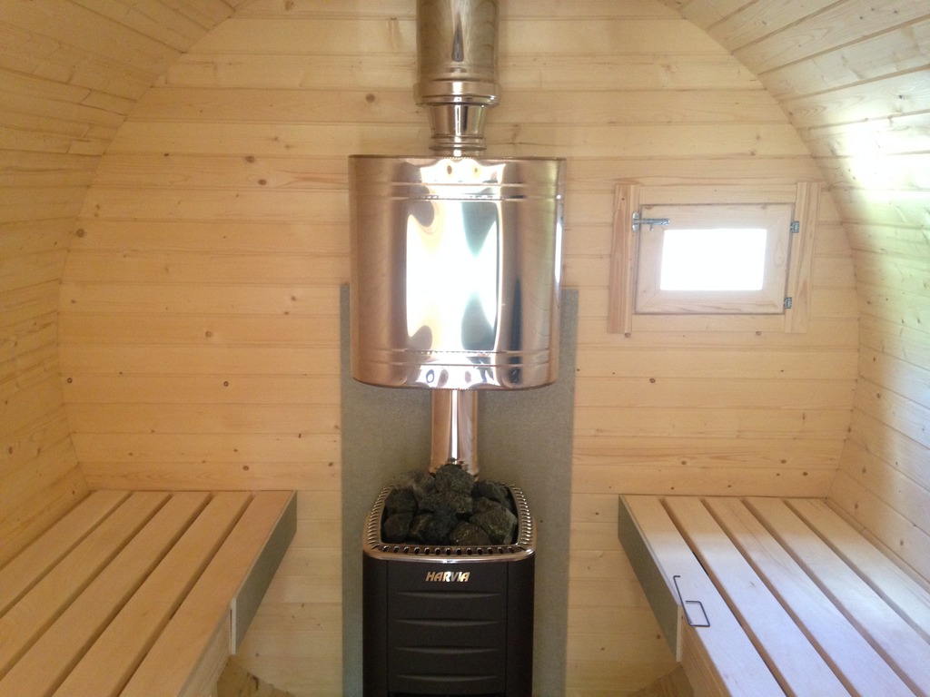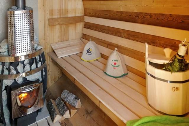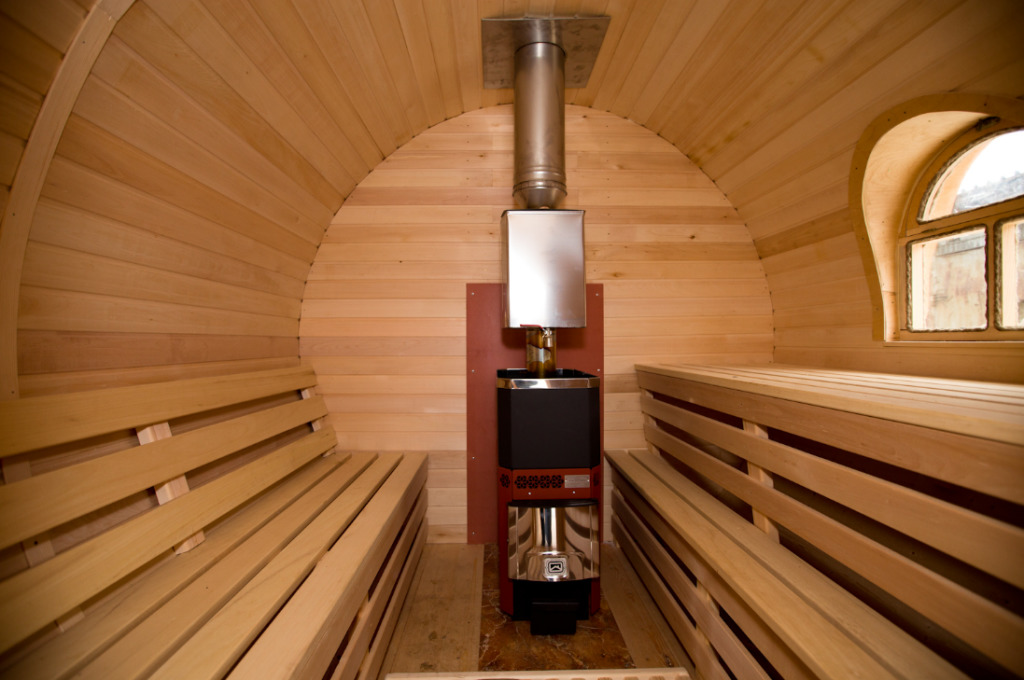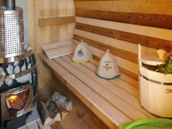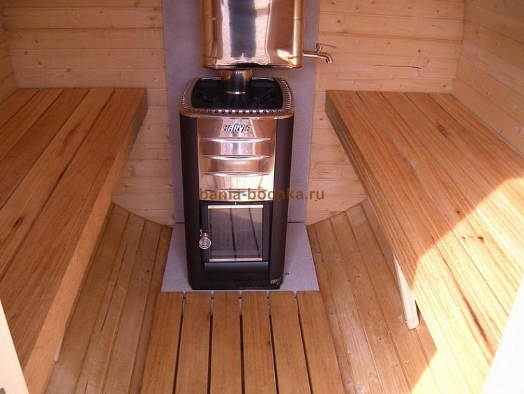 - To make the stove in the bath-barrel work even more efficiently and give more steam, the space around it should be trimmed with sheets of aluminum or stainless steel. These types of metals give the best vapor in the air.