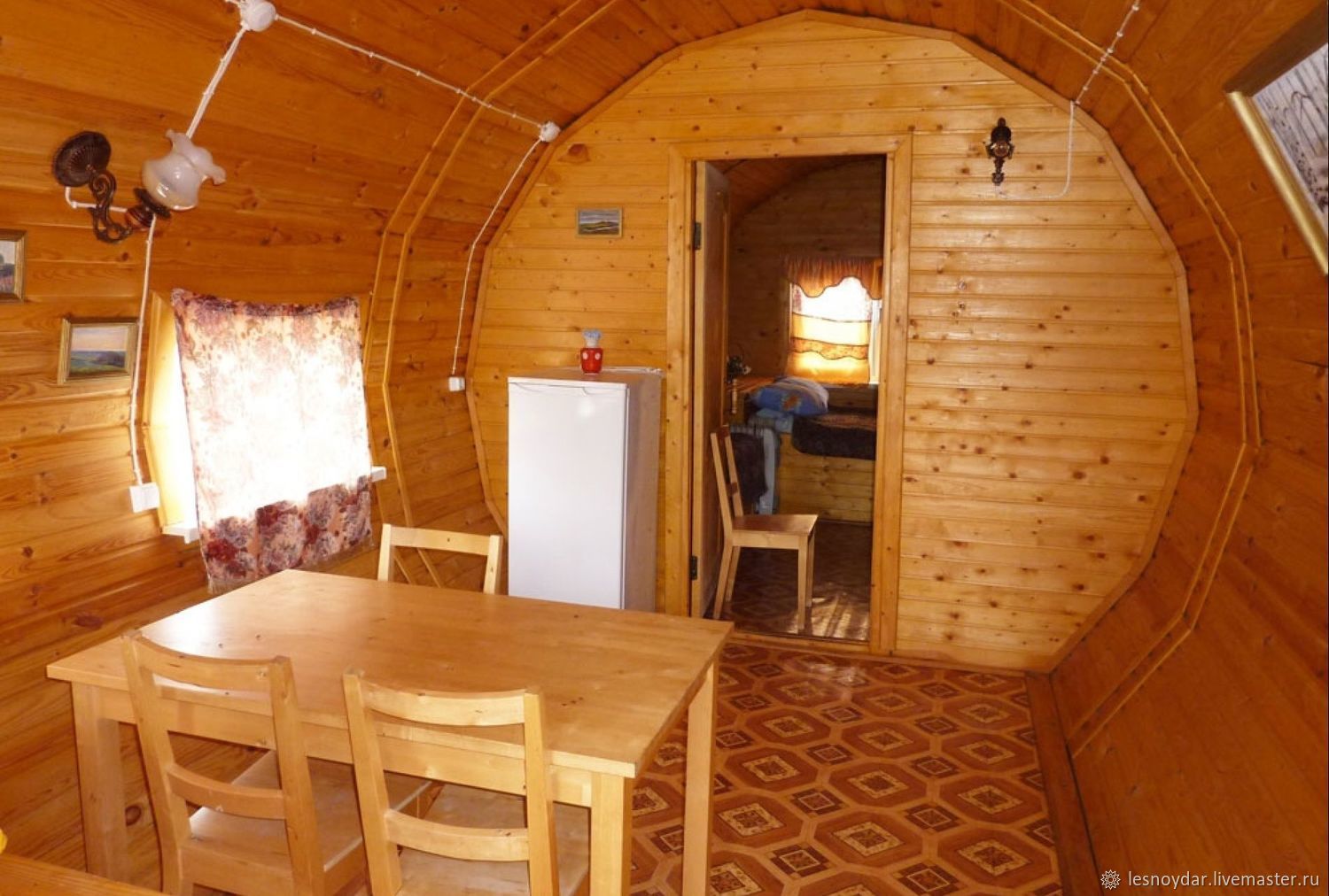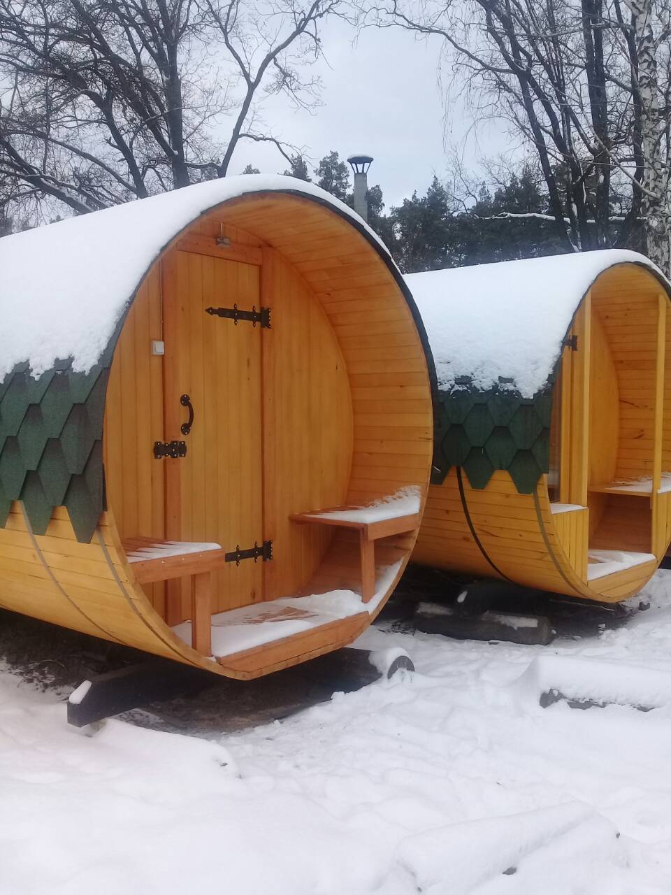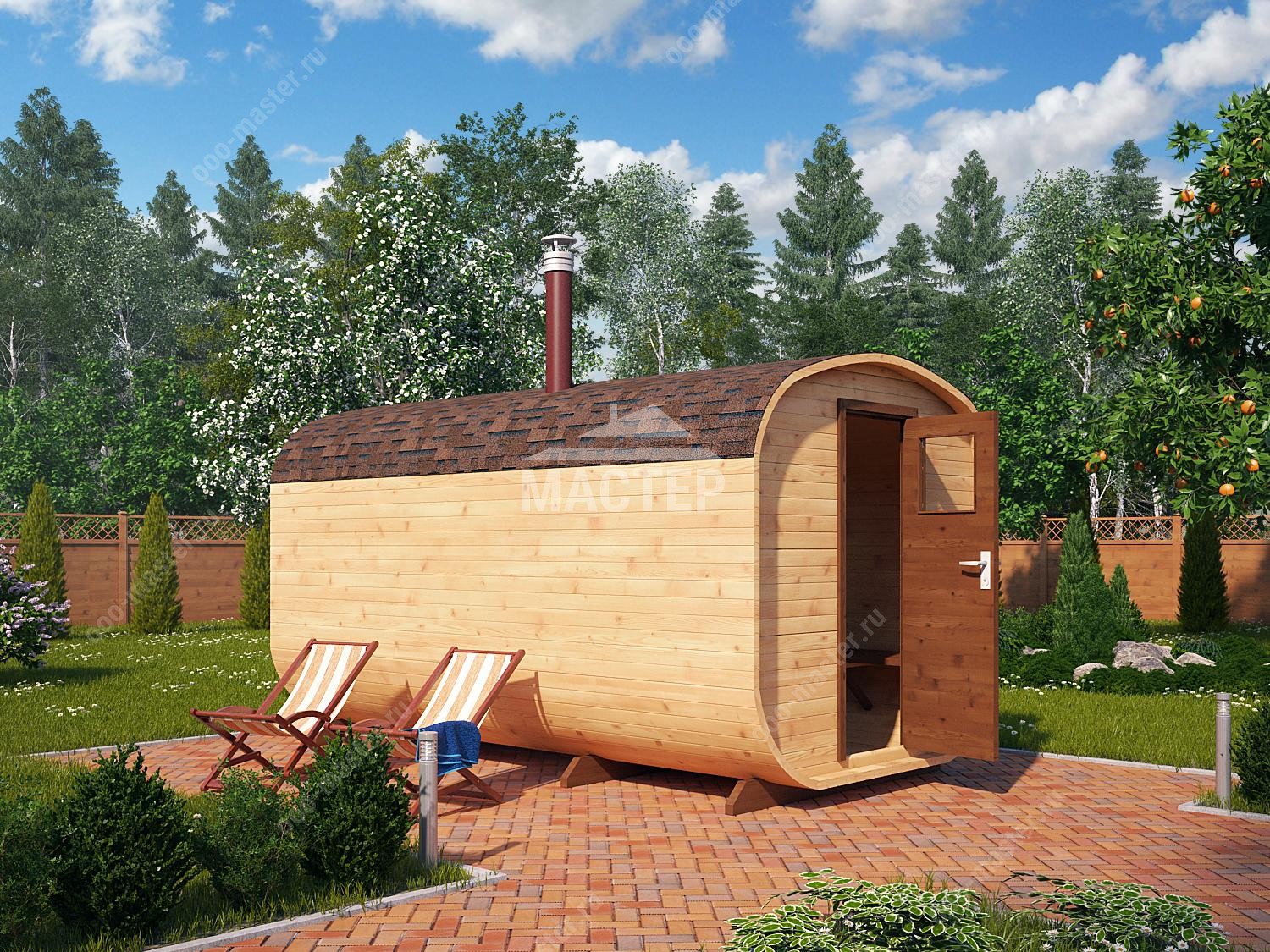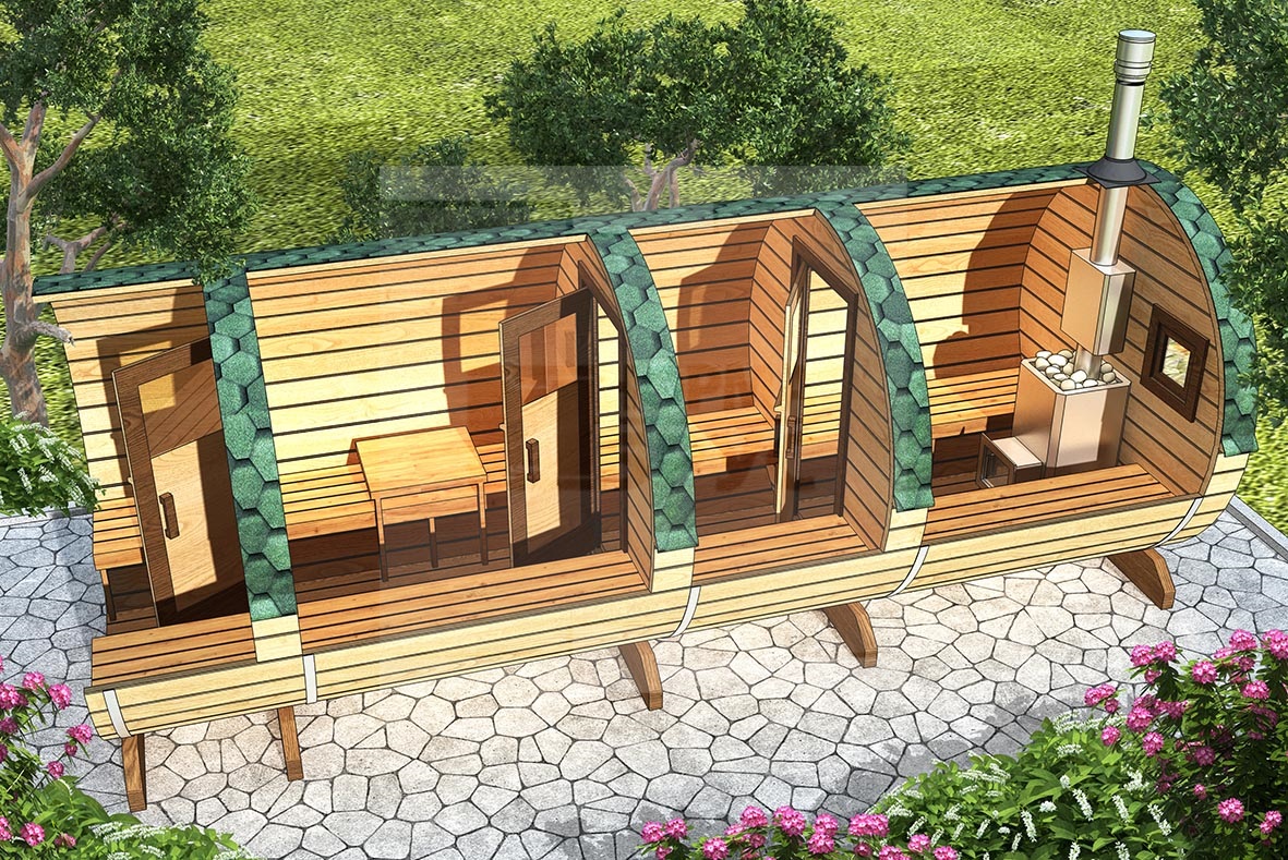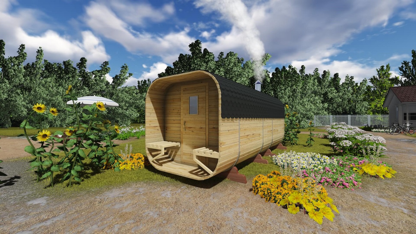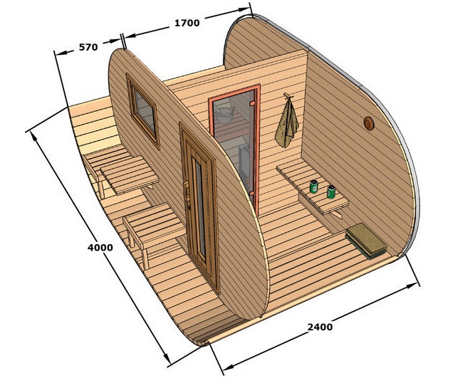 The maximum size of round-shaped cozy bathhouses is 6 meters.. This space is quite enough to accommodate such components as the steam room, the washing compartment and the rest room.