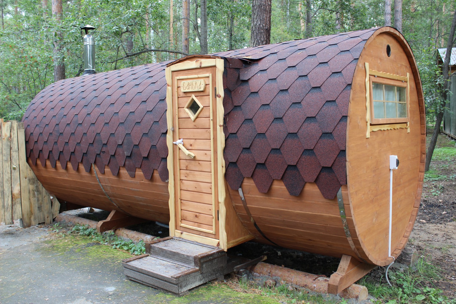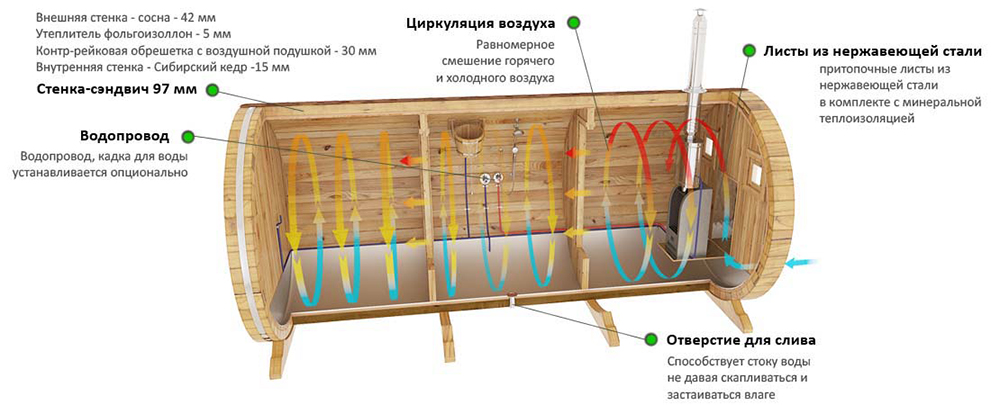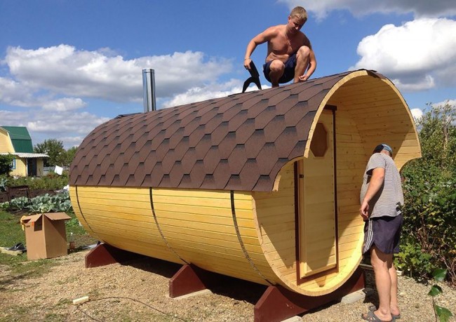 Another drawback that buyers notice is the closeness of bath-drums. People who built such a bathhouse with their own hands, argue that it is quite difficult to make it yourself. But if you do everything right or turn to the help of specialists, then the resulting construction will surely please you with a long service life and fast heating.