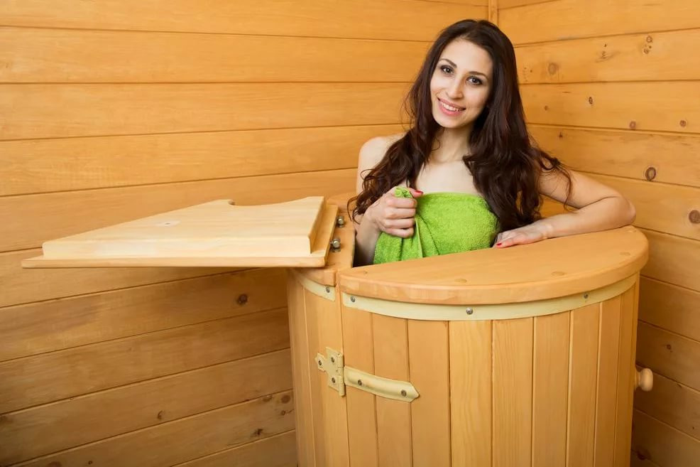 Next to the bath is recommended to place the rinse font after hanging out in the steam room.