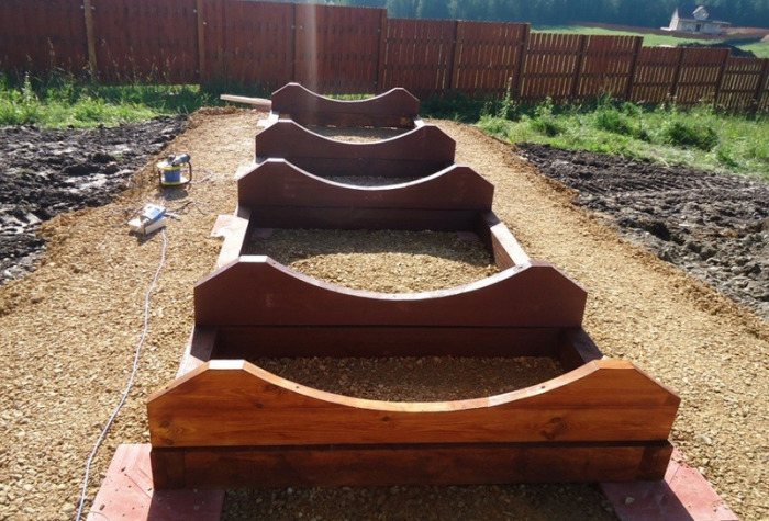 - you need to install on the resulting site a kind of frame supports made of wood with semicircular grooves. With ready-made kits, these parts come in a set;