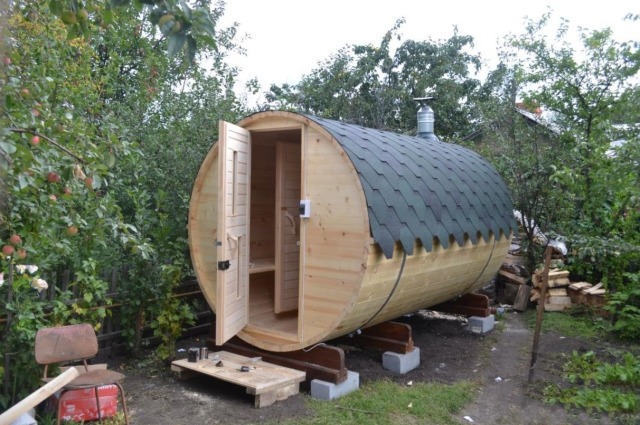 - Barrel Sauna. Experts say that building a barrel-sauna is much easier than a standard steam room. For the tightness of such structures will only need to seal up all the cracks in the walls and on the floor. In the area of the roof of such structures is often made a hole of small size, which closes the valve (in whole or in part). Drainage system in the barrel-sauna is not needed.