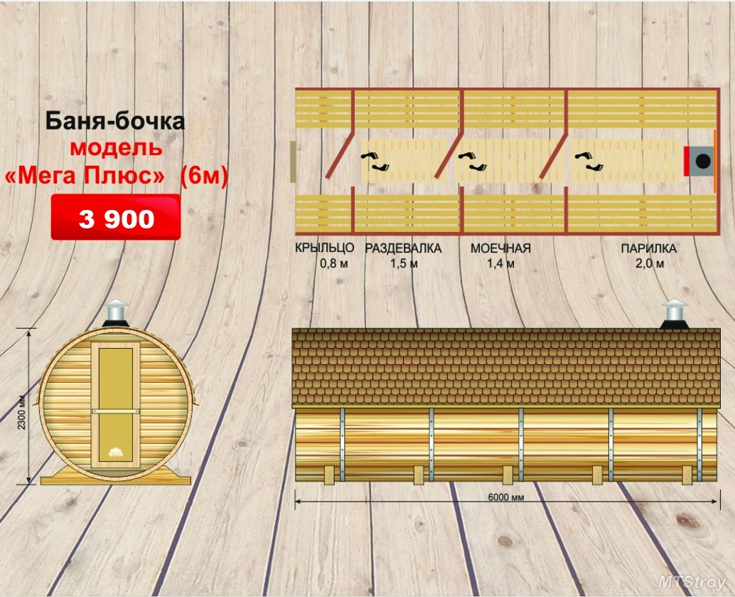 The main feature of the bath-barrel is its compact size. Thanks to this characteristic line, such a structure can be positioned even in a small area. The volume of the premises of such a building is very modest.