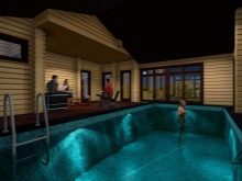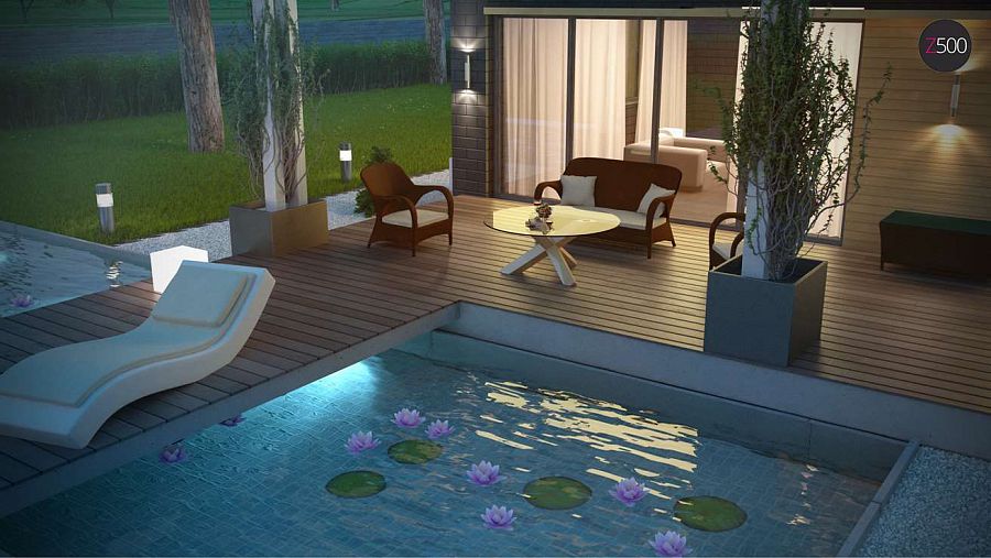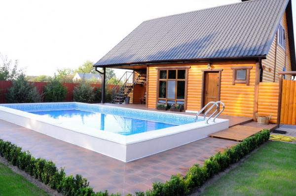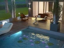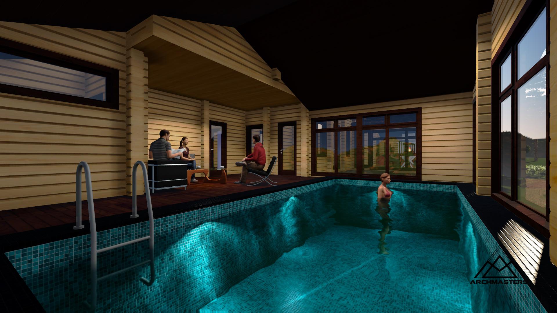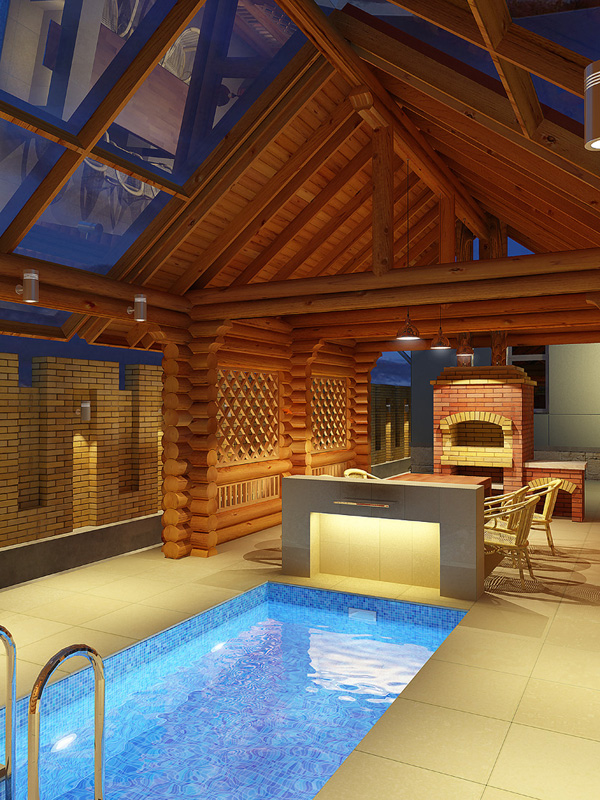 The implementation of the 2 in 1 plan (bath + rest room) allows you to make room in a suburban area for the pool. In this case the pool can be located both under the open sky and under a canopy. And it is also possible to install a swimming pool in the glazed annex or on the terrace.