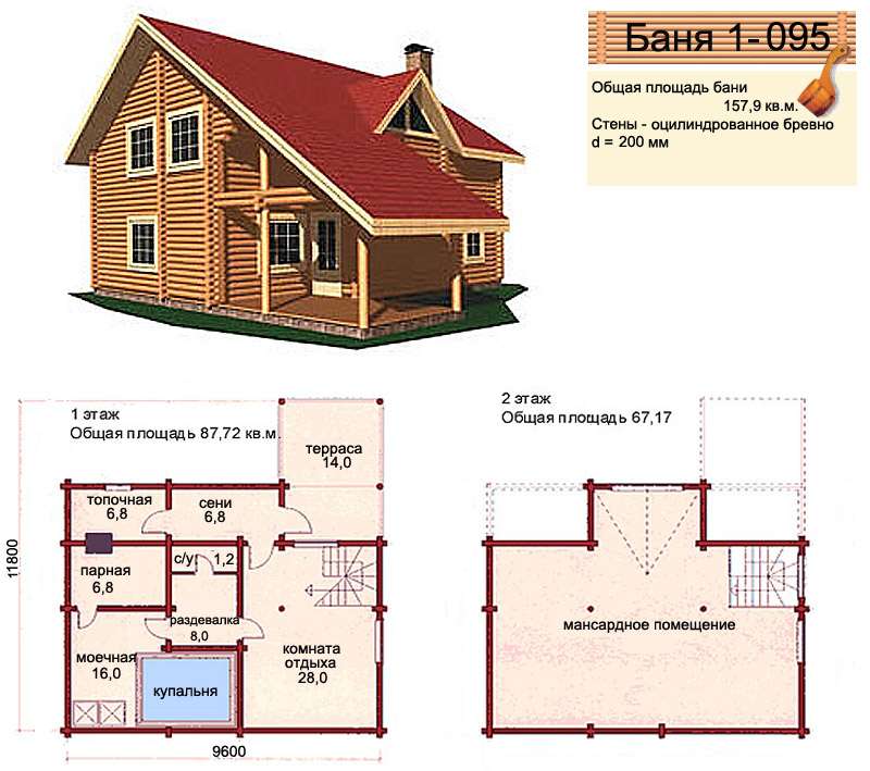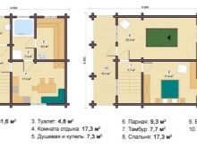 Numerous projects of a two-storeyed bath assume the presence of a full-fledged communication system. That is, you can live in it as in a house, if only for a short time, including in winter.