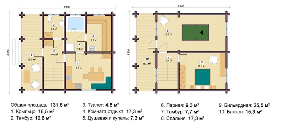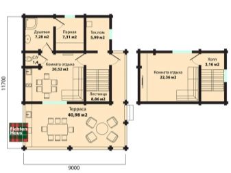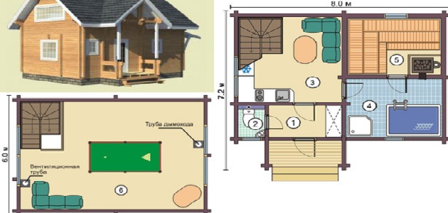 For a periodic rest of the company's guests, or if you need to live in the house for more than a day, you need to plan the construction of a more spacious sauna with several rooms on the second floor, where you can equip a lounge, bedroom, gym room, billiard table or tennis table.
