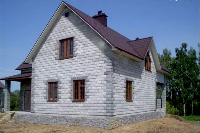 A 6x6 m corner bath of foam concrete can look like a real castle.