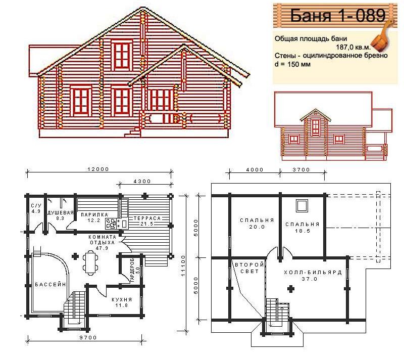 Everyone can independently satisfy their requirements in order to create a unique and beautiful bath on two floors. Therefore, it is important to know what beautiful projects of a two-story bath house exist.