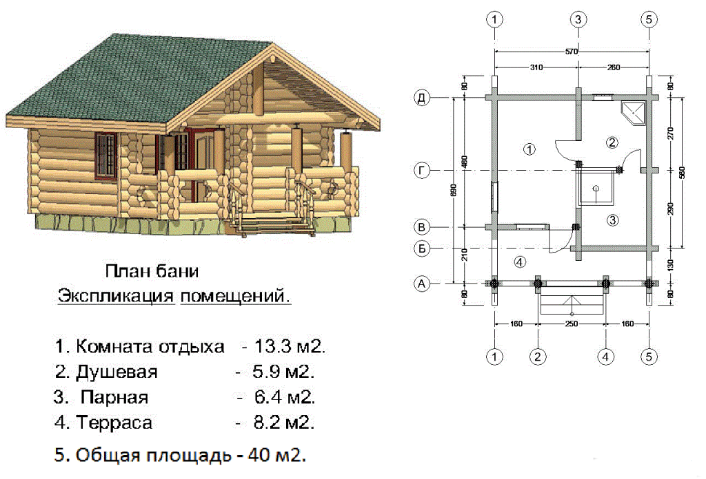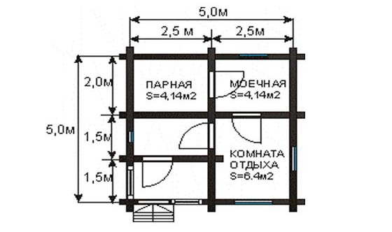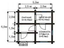 Before starting the construction, it is necessary to think over and decide what the bath will look like and what tasks the owner assigns to it. Currently, a project of a 5x5 m bathhouse with a chopped terrace and a mansard is very popular. This is a small structure, but it will comfortably accommodate a company of 5-7 people.