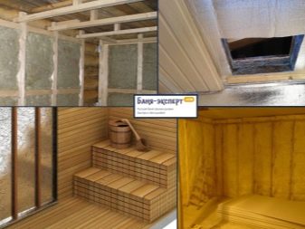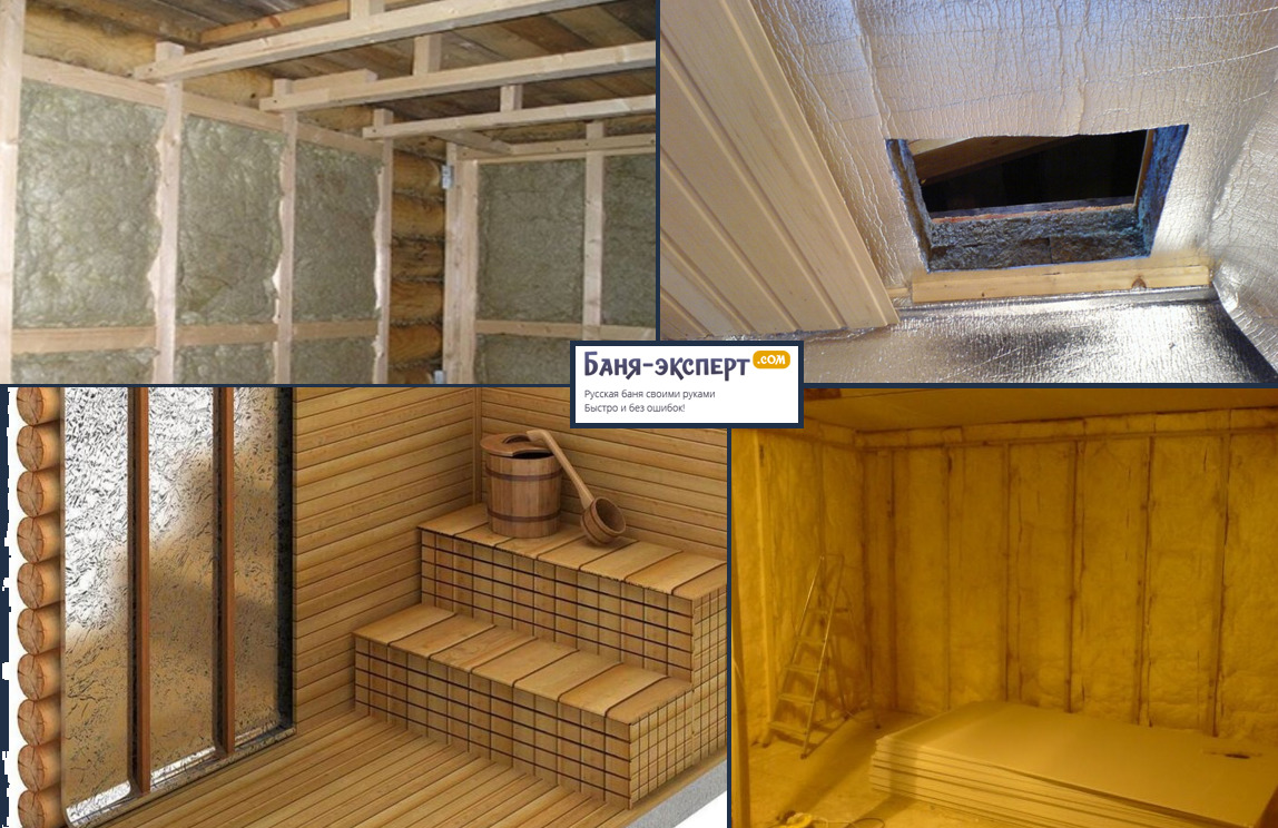 The steam room is first covered with a waterproofing film.On it fix basalt insulation, produced in rolls. It is covered with foil film. On top of it is crammed with wood, then the whole structure is closed either with clapboard or other material.